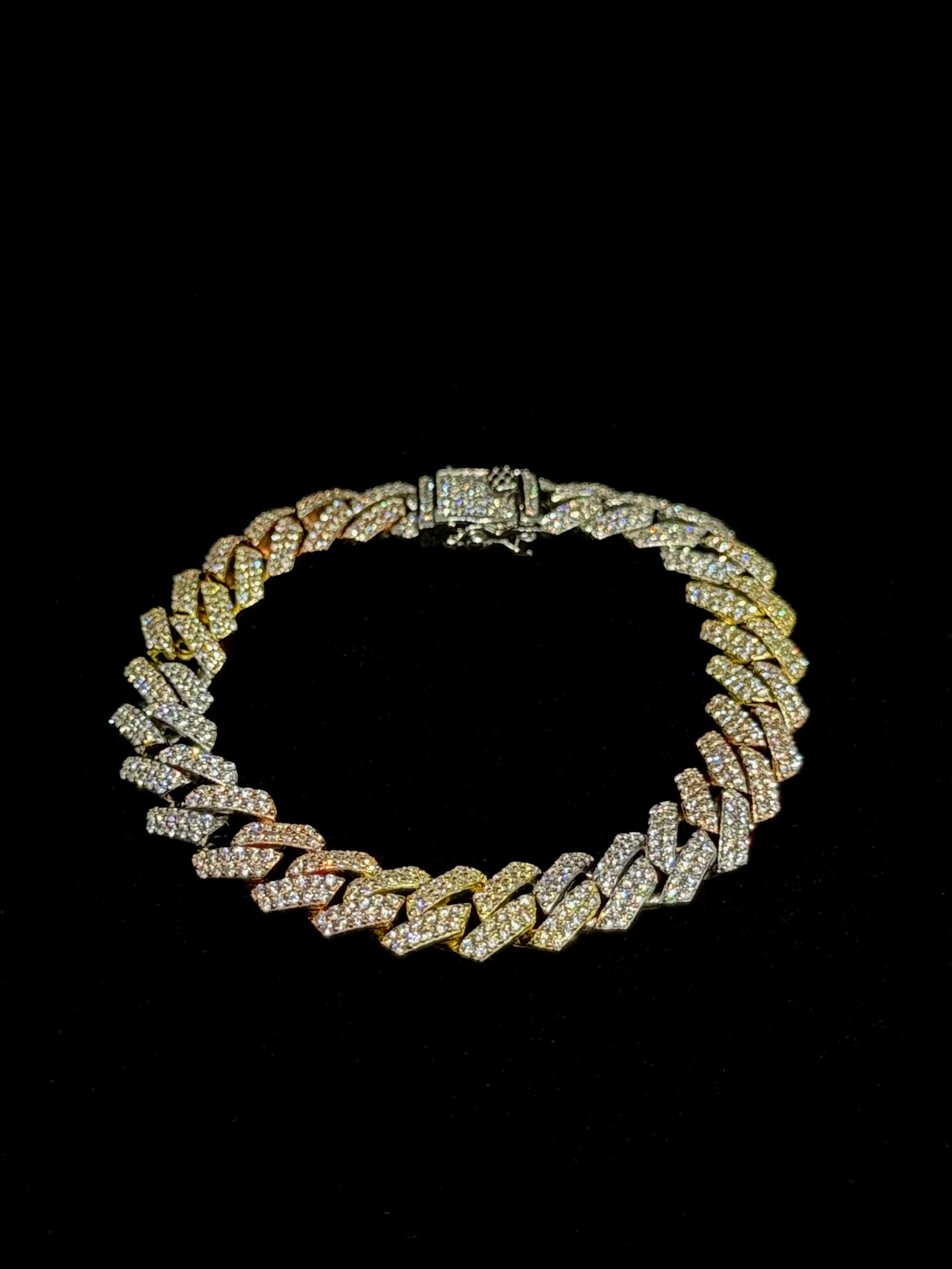 Pulso Unisex Tejido Cubano En Plata Italiana .925 con Zirconias Incrustadas